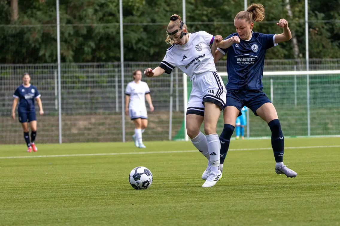 Die erste Damenmannschaft der SSVg Velbert 02 musste sich im Landesliga-Topspiel beim TSV Solingen trotz großem Kampfgeist knapp mit 2:3 geschlagen geben. Vor rund 100 Zuschauern entwickelte sich eine intensive Partie, in der die Gastgeberinnen die erste Hälfte dominierten. Die Velberterinnen taten sich schwer, die vorhandenen Räume konsequent zu nutzen, und agierten teilweise zu umständlich im Spielaufbau. Dass es zur Pause nur 0:1 stand, war auch Sandra Kopowski im Tor der Löwinnen zu verdanken, die mehrfach stark parierte. Zudem klärte Elisa Halbach in höchster Not auf der Linie.